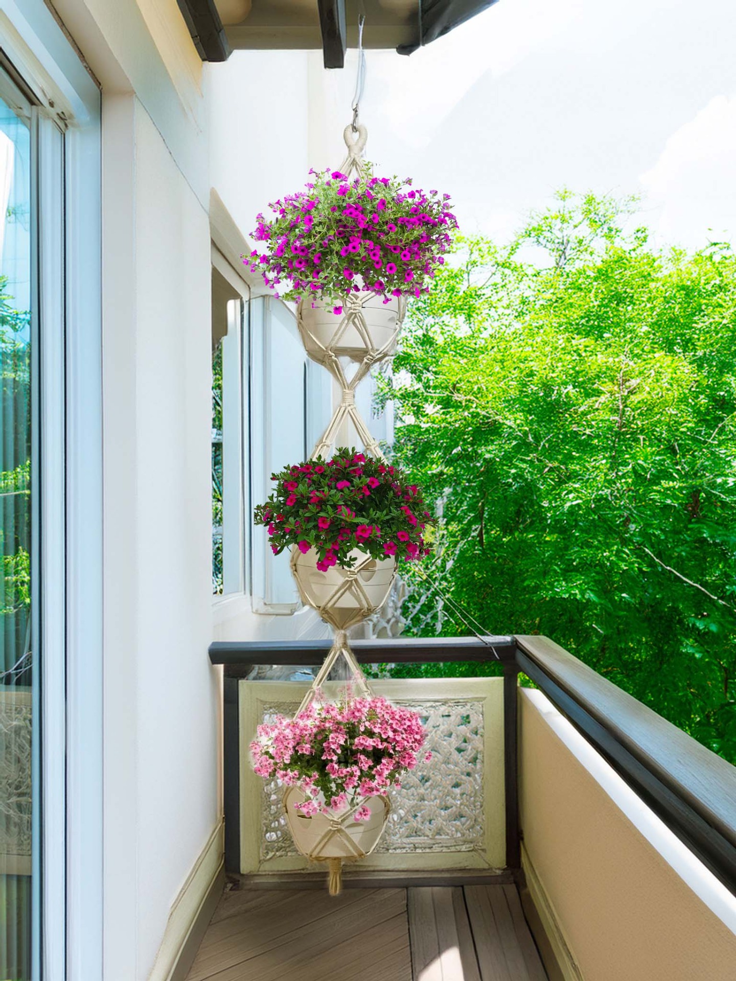 Makramee-amppeli on ajaton sisustuselementti, joka antaa huoneelle ilmavuutta ja nostaa viherkasvit näyttävästi esille – olipa kyseessä olohuone, keittiö tai parveke.