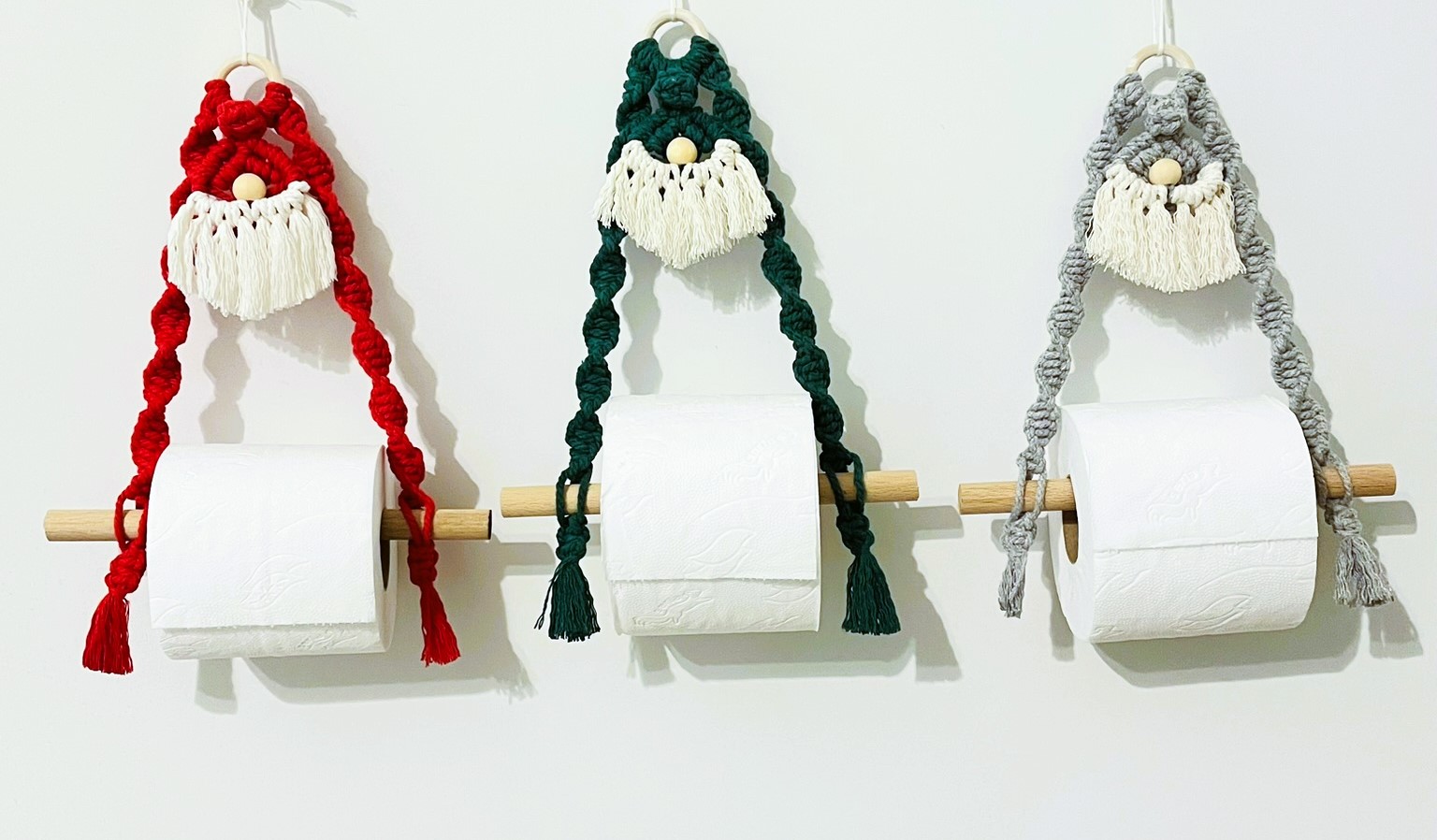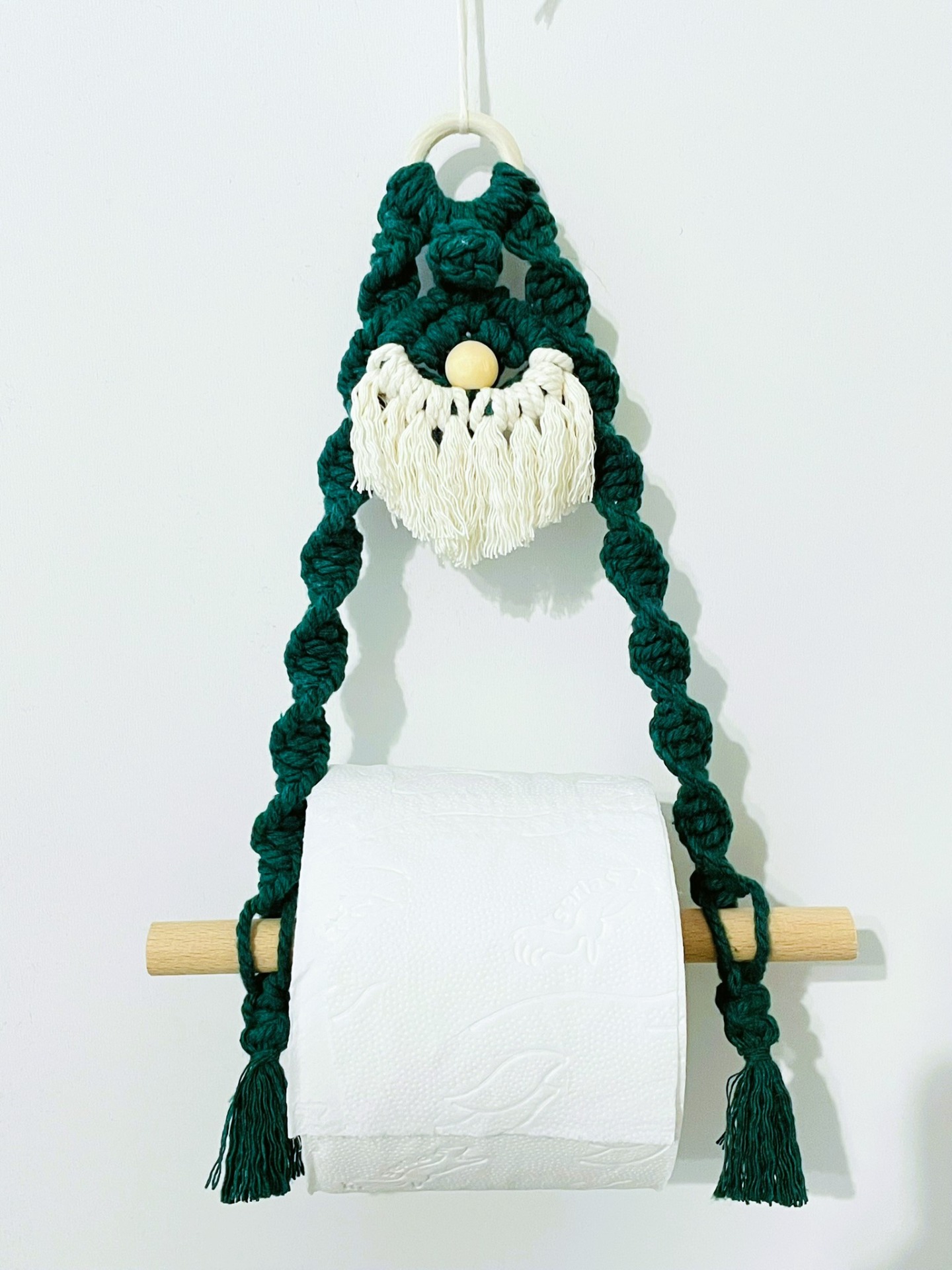 Makramee wc -paperi / pyyhe -teline - Vihreä tonttu