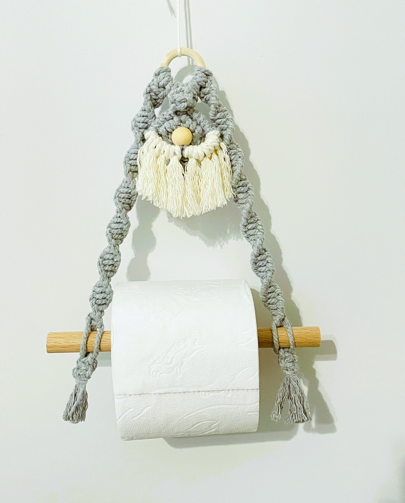 Makramee wc -paperi / pyyhe -teline - Harmaa tonttu