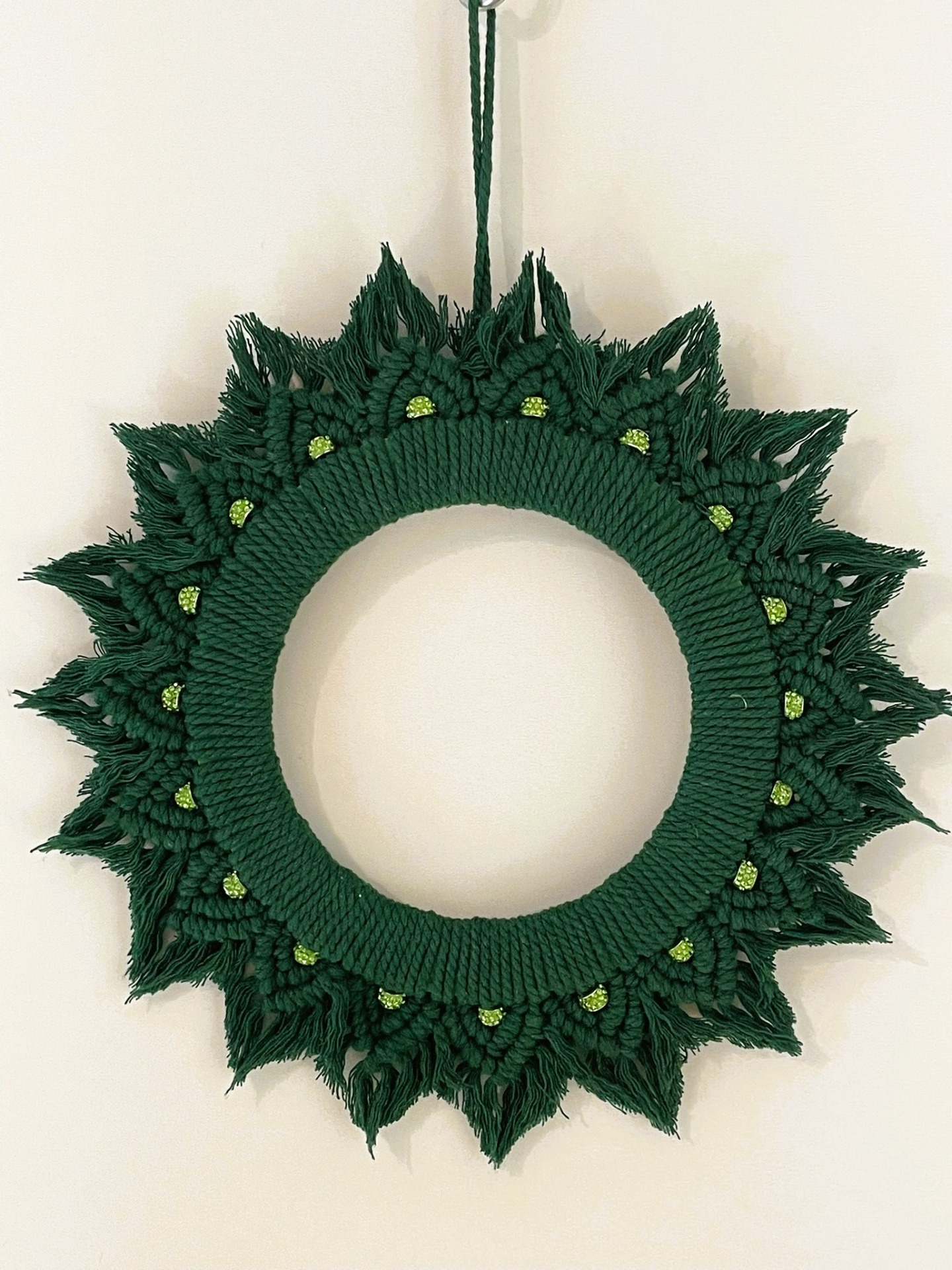 • Materiaali: Puuvilla, metallirengas, vihreät helmet