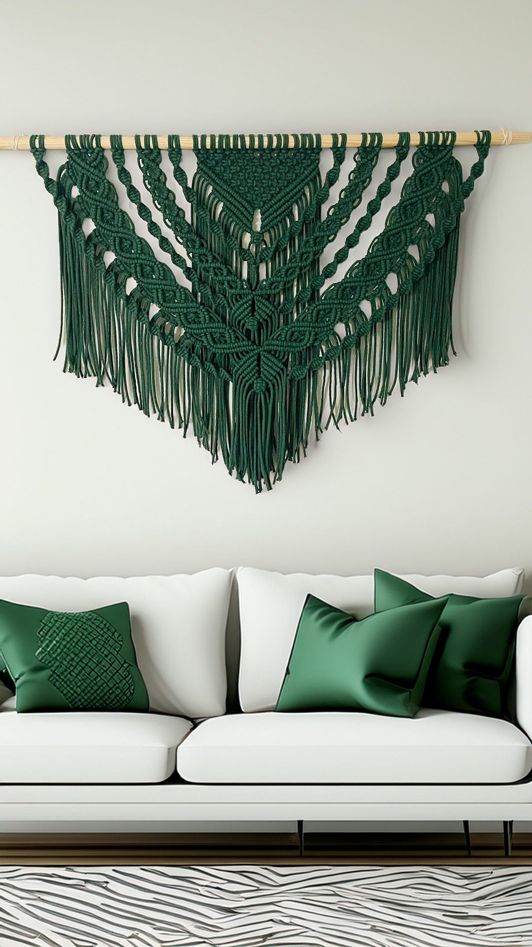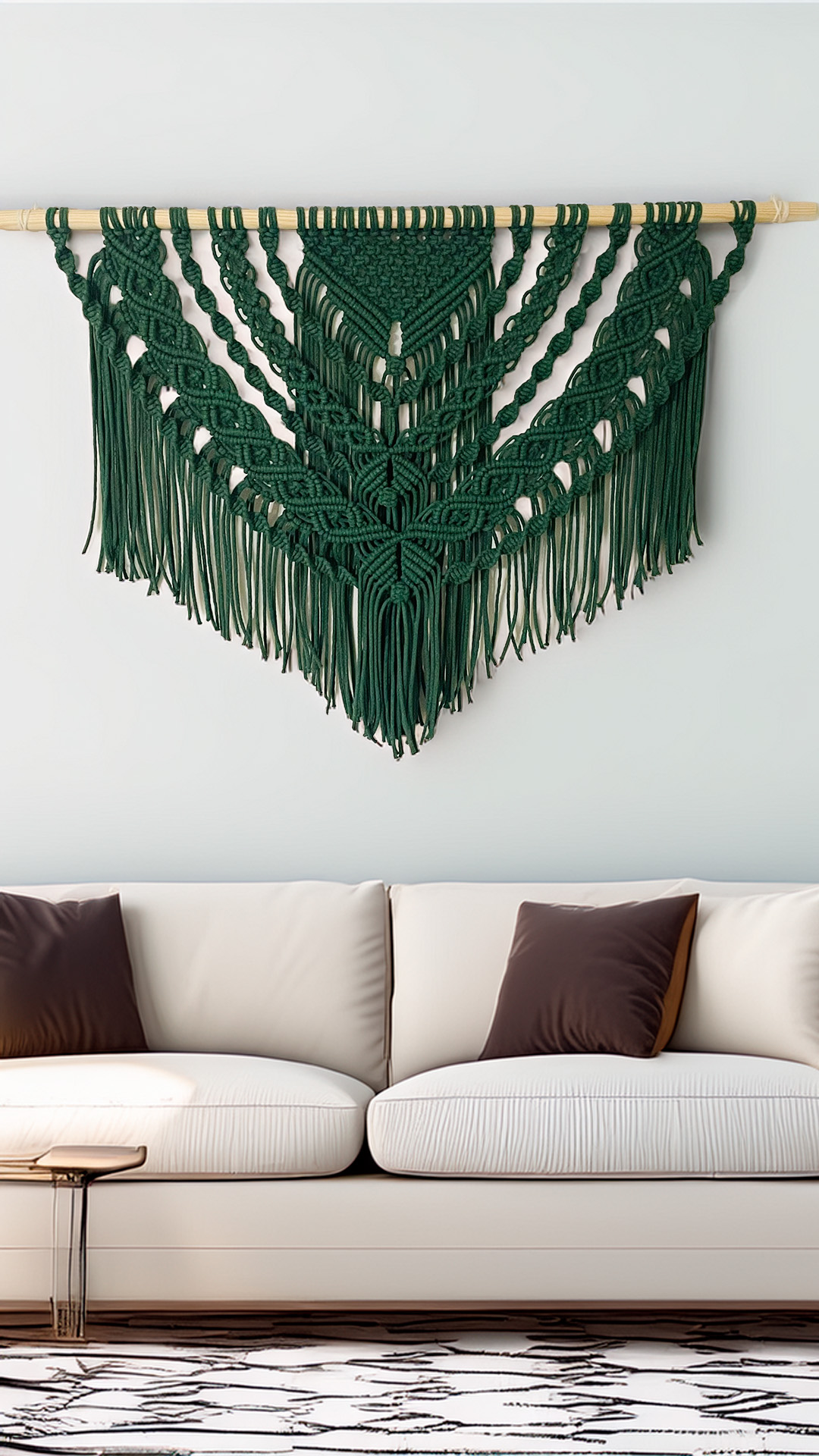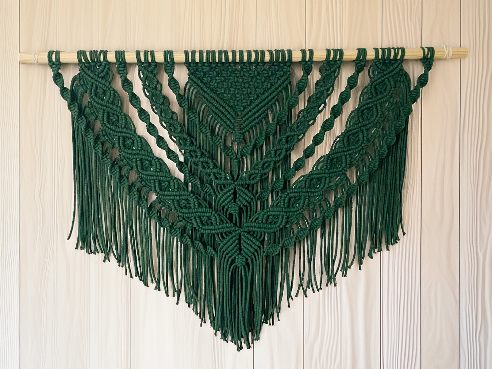 Ajaton makramee seinäkoriste on helppo yhdistää eri sisustustyyleihin ja toimii näyttävänä katseenvangitsijana.